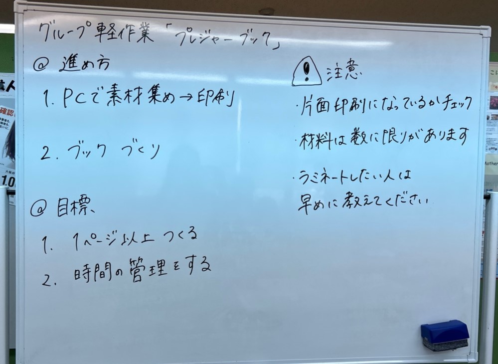 こんにちは。 先日、グループ軽作業でプレジャーブックづくりに取り組みました。