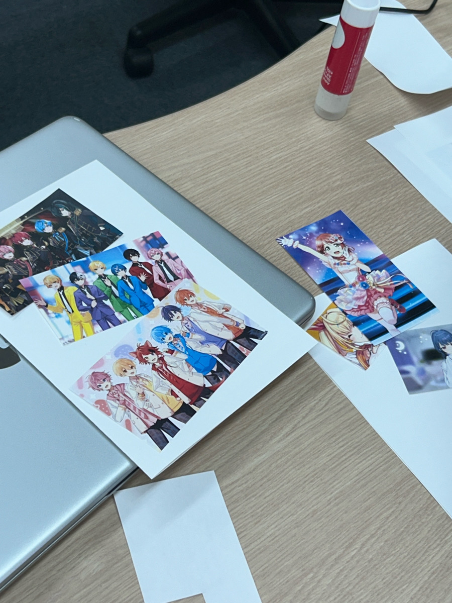 絵を描いたり雑誌のページを切り貼りしたりと作り方は様々ですが、今回はインターネットで好きな画像やイラストを探し、印刷して白い紙に貼って作っていきました。