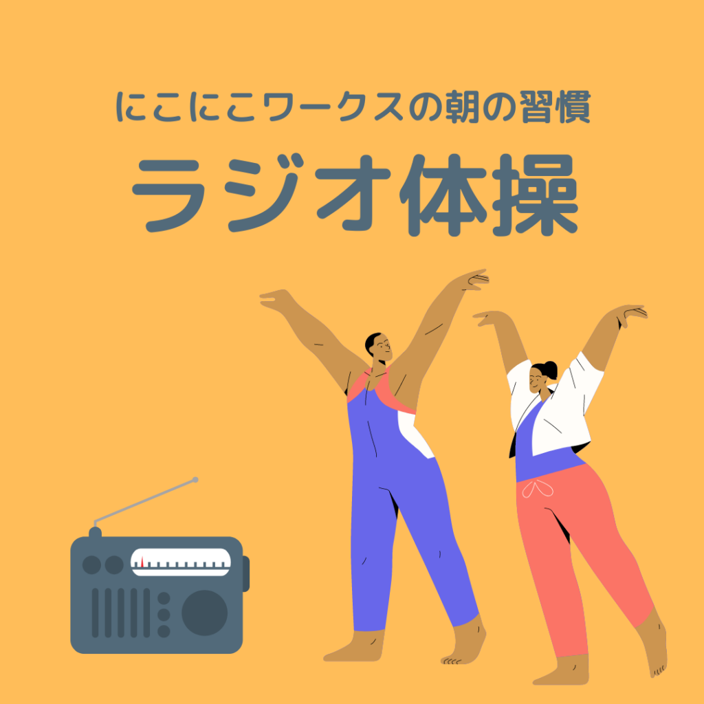 大阪市西区の就労移行支援事業所にこにこワークスで行っている精神疾患や発達障害の方へのサポート ~ラジオ体操~