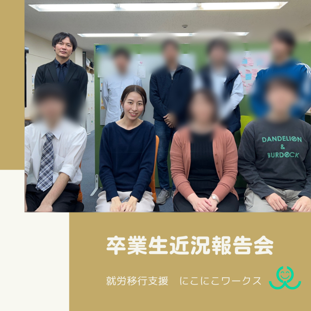 大阪市西区の就労移行支援事業所にこにこワークスで行っている精神疾患や発達障害の方へのサポート ~卒業生近況報告会~
