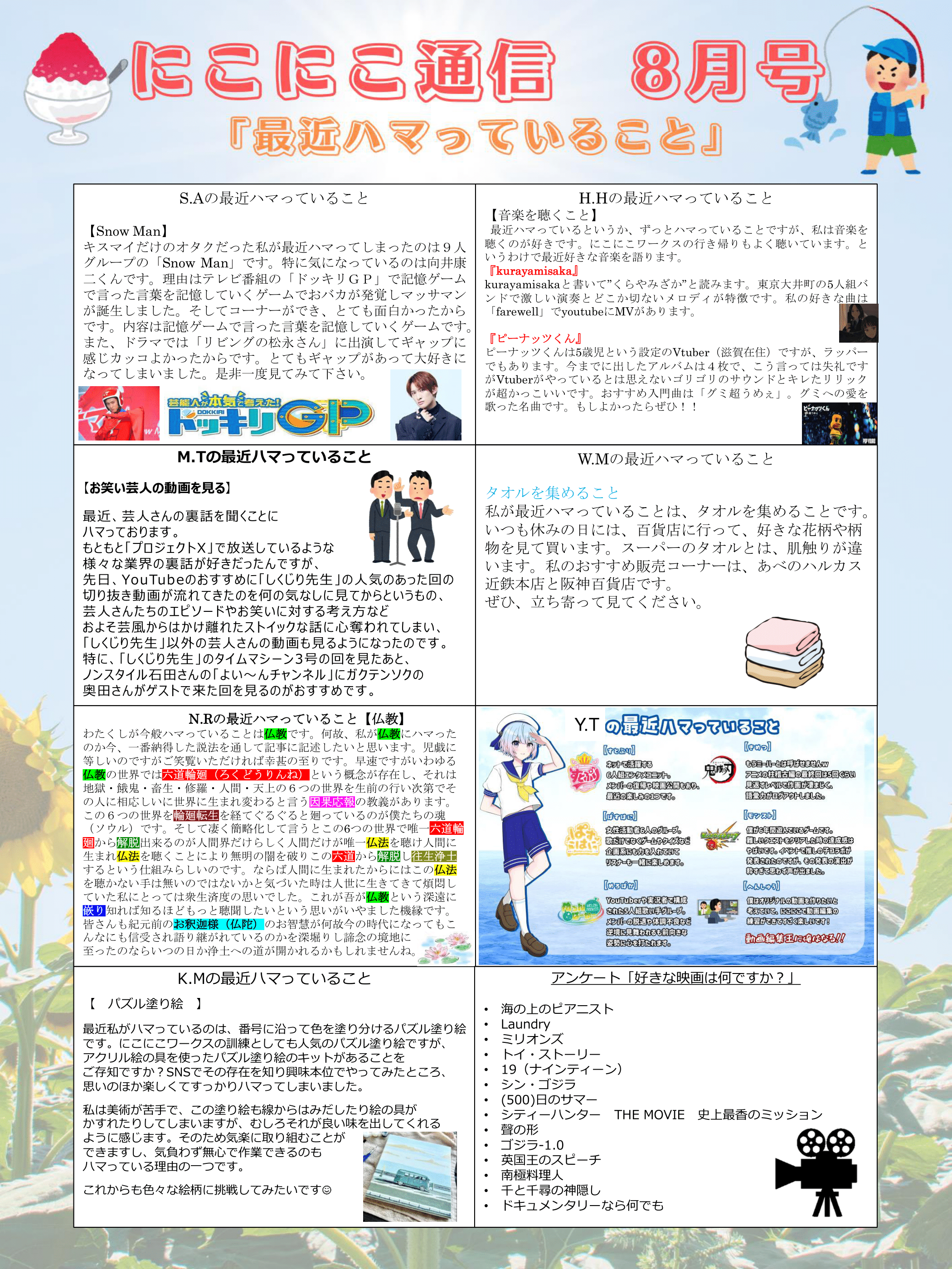 最新号が完成したところですが、利用者のみなさんは9月号の作成に向けてさっそく準備を進められています。 来月号もお楽しみに☺