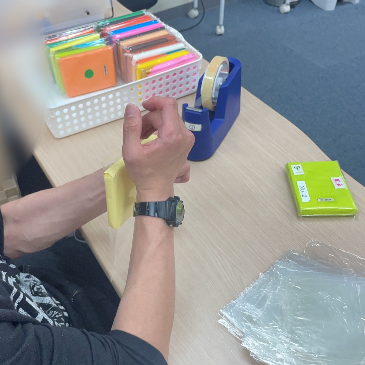 にこにこワークスには様々なお仕事を想定した実践的な訓練があります。 その中のひとつが、ピッキング、梱包、袋詰めなどの軽作業です。