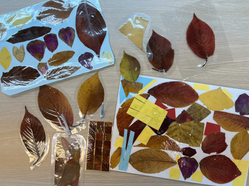 みんなで拾ってきた落ち葉で落ち葉アートを作りました!