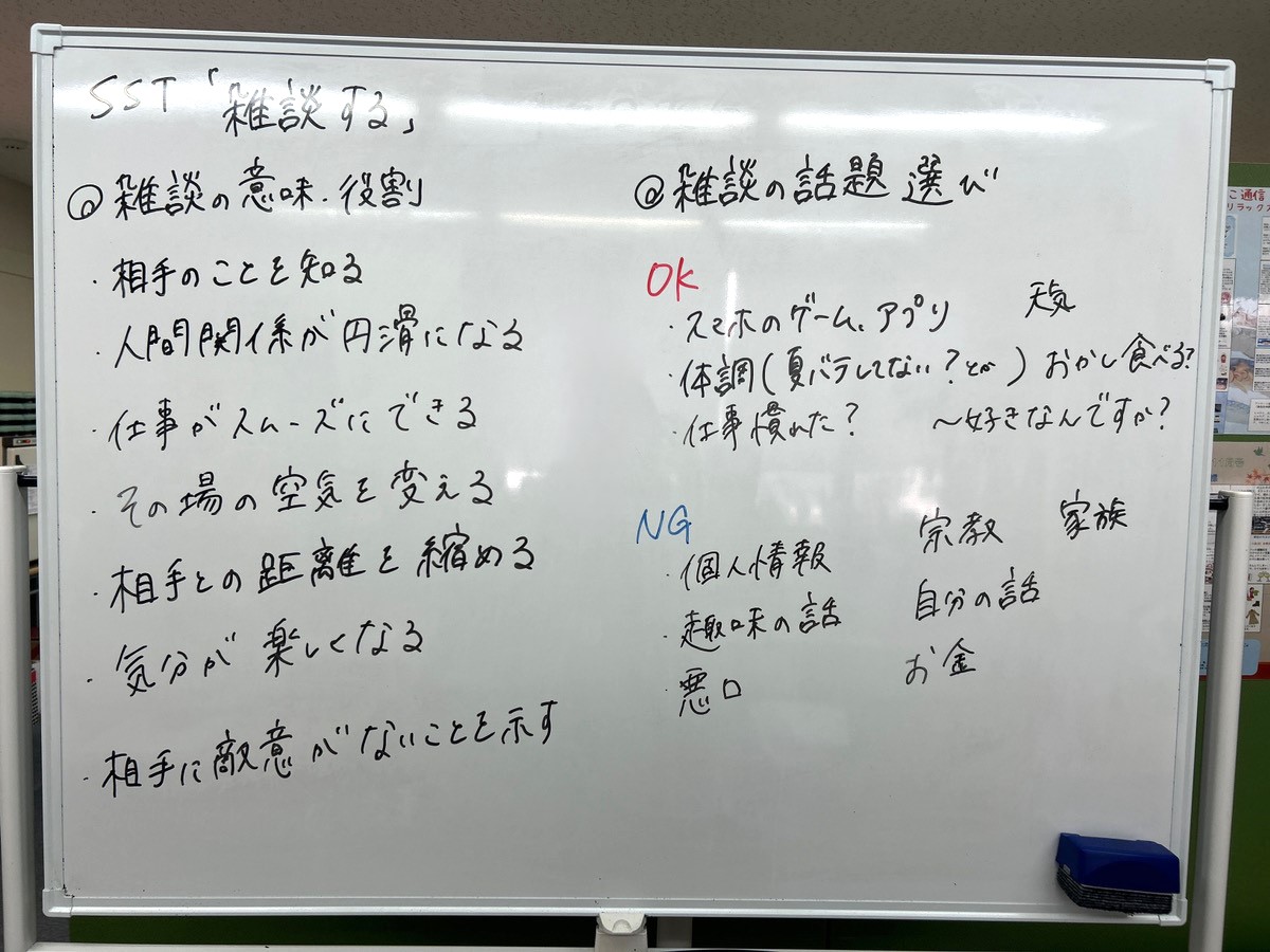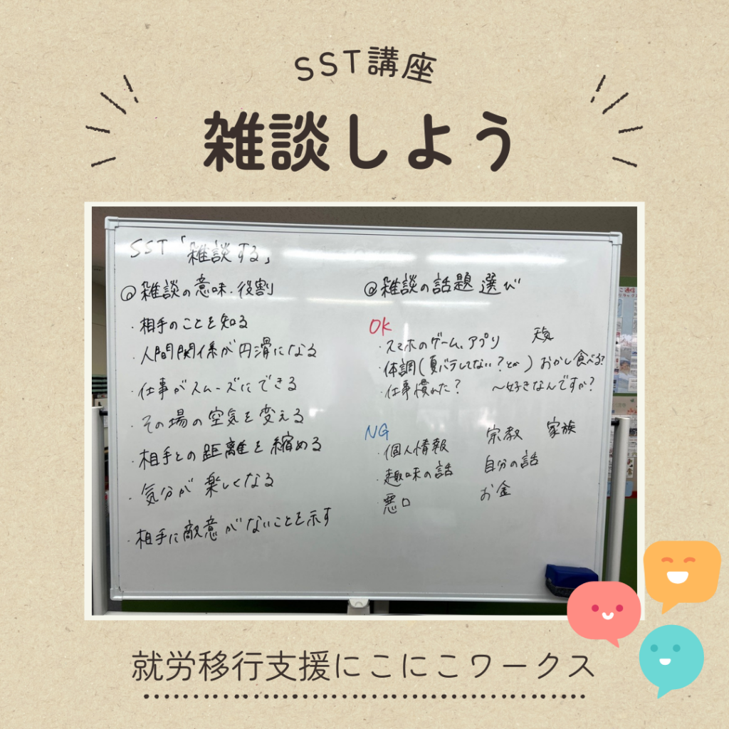 こんにちは。 今日のSST講座のテーマは「雑談」です。