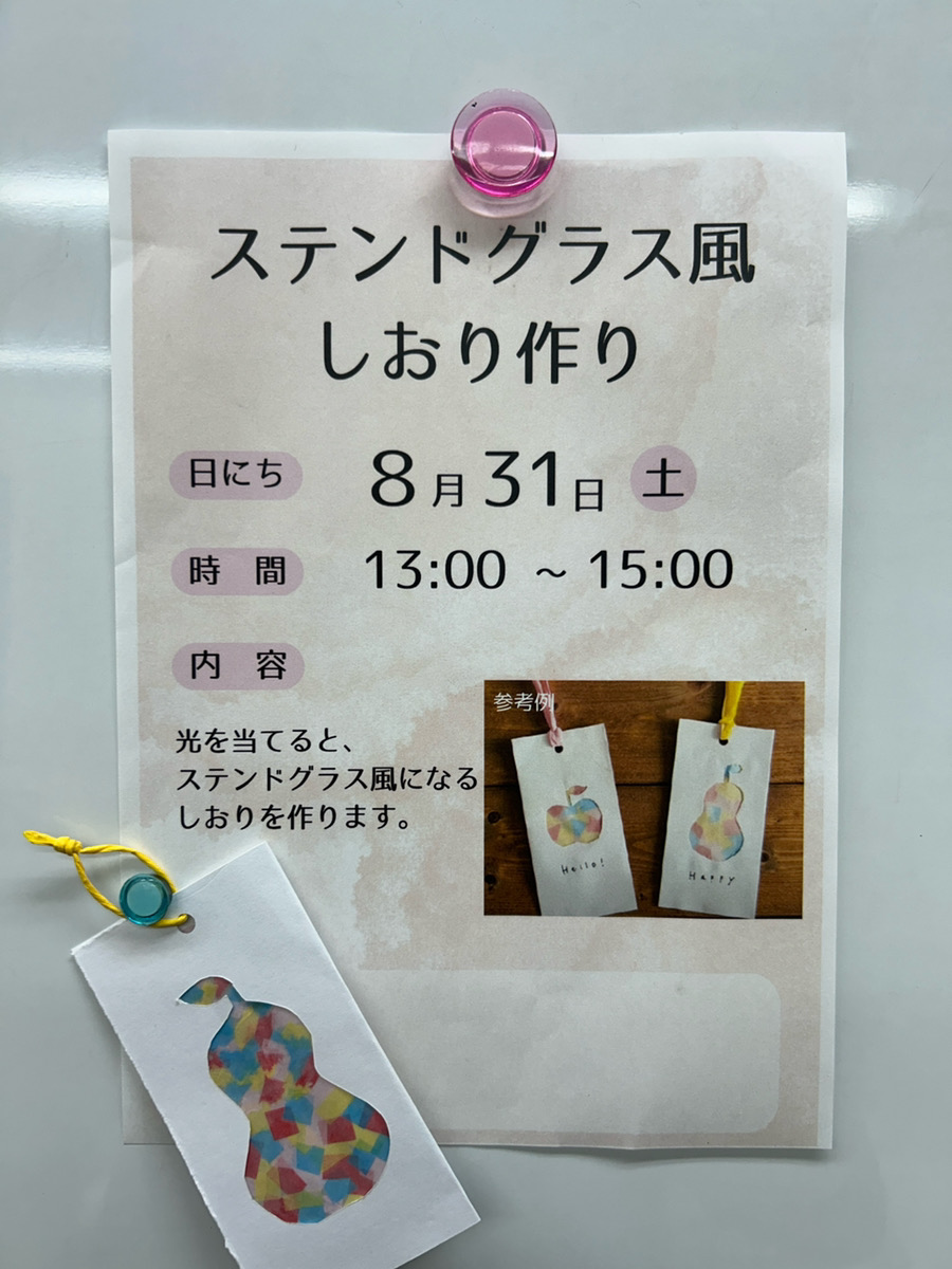 雨の中でしたが、本日もご参加いただきありがとうございました! 明日から9月、読書の秋にぜひ自分だけのステンドグラスしおりを使ってみてください♪