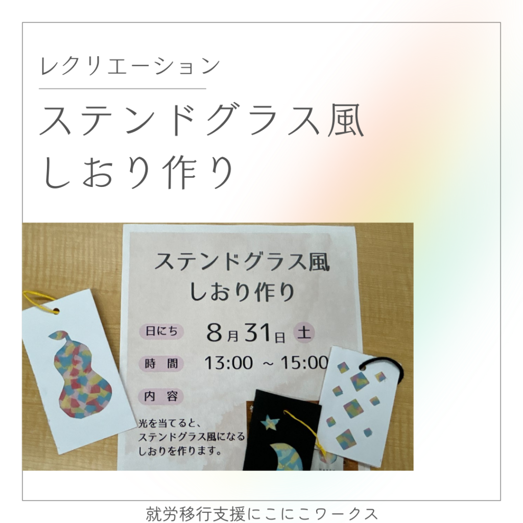大阪市西区の就労移行支援事業所にこにこワークスで行っている精神疾患や発達障害の方へのサポート ~ステンドグラスしおり作り~