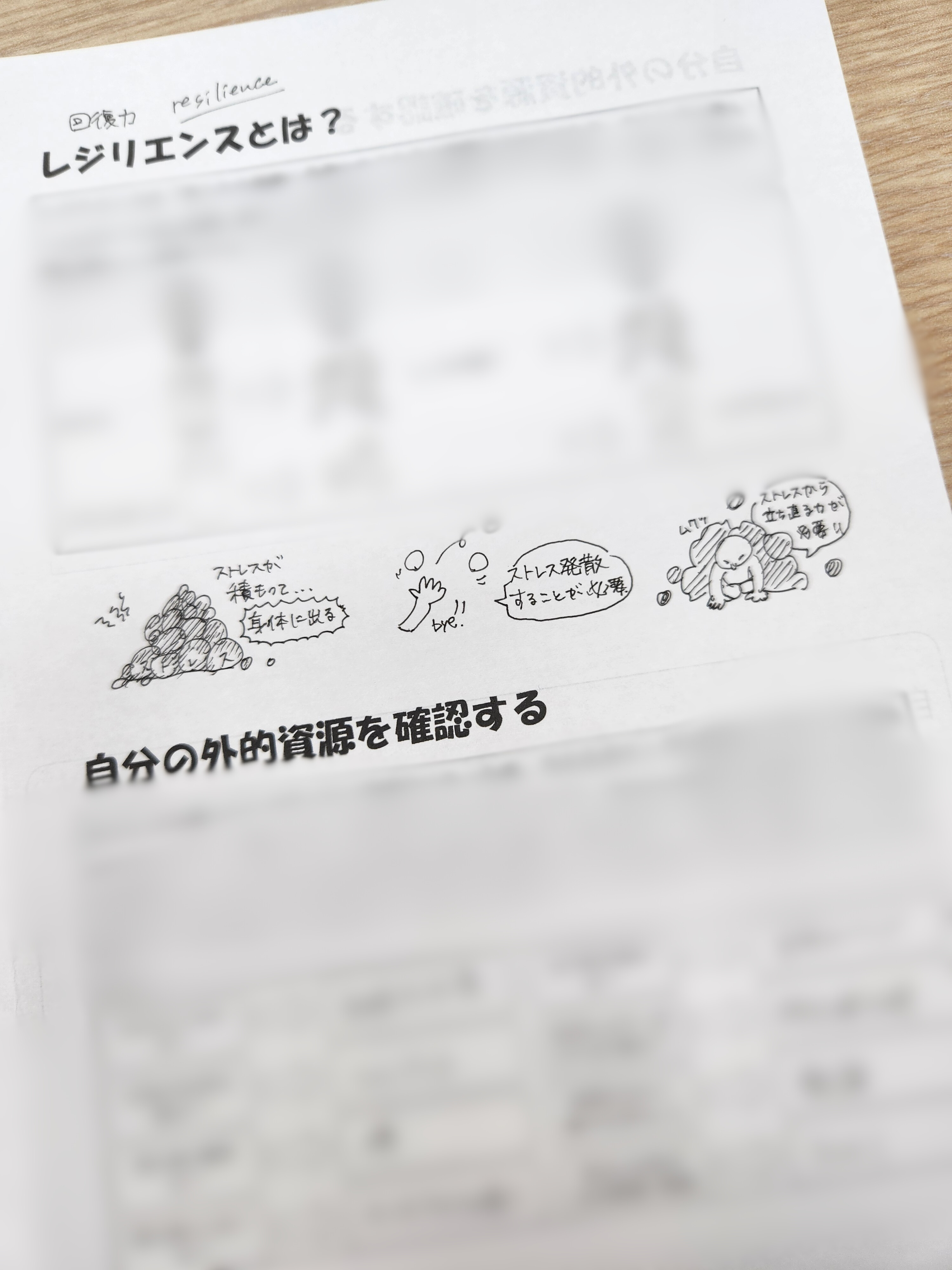 気持ちを楽にするための「リソース」を書き出し自覚することで、 ストレスに対する「レジリエンス」を高めることができます。