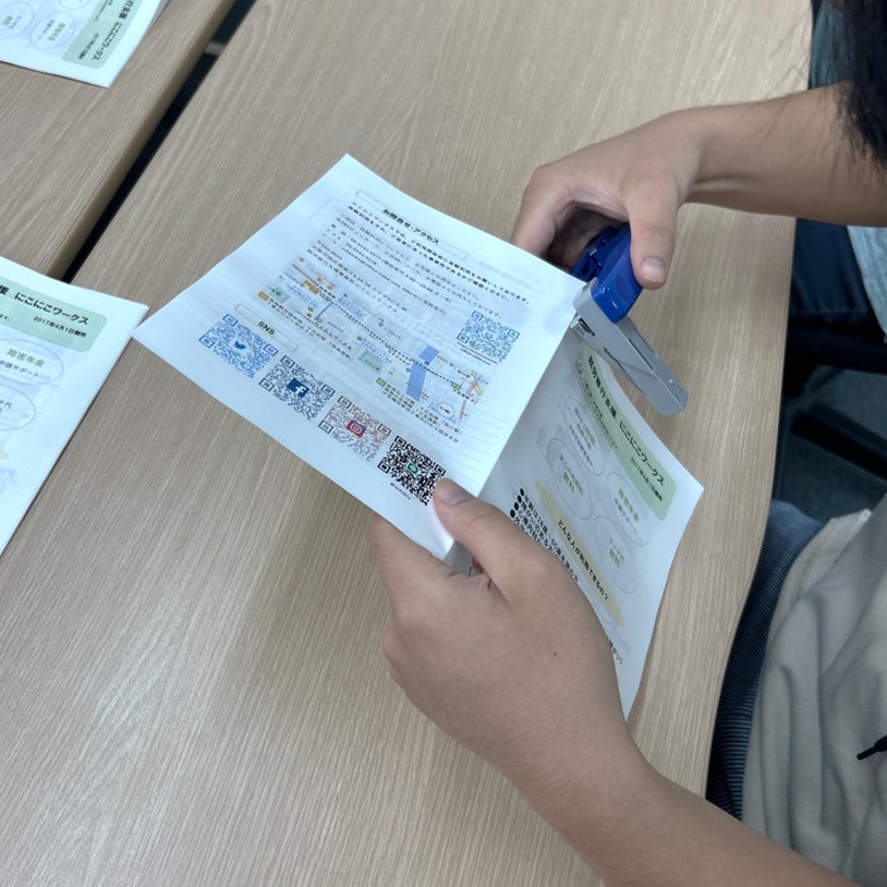 グループ軽作業では様々な作業を行っていますが、今日は事務作業として封入作業と製本作業に取り組みました。 どちらも一見シンプルに見えるかもしれませんが、実際には細かな手順やコツが求められる仕事です。