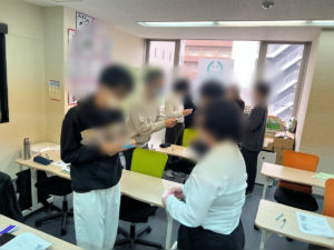 その後は、実践としてみなさんで名刺交換の練習も行いました!