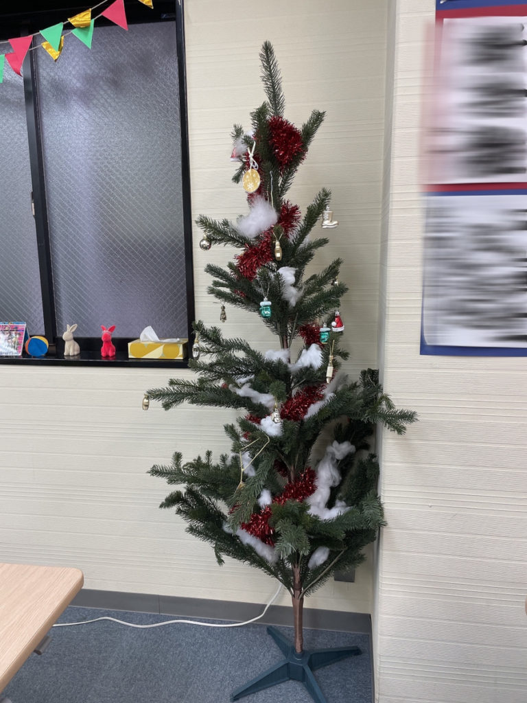 そしてそして、メインのクリスマスツリーがこちら!利用者さんにも手伝っていただきながら飾りつけをしました。