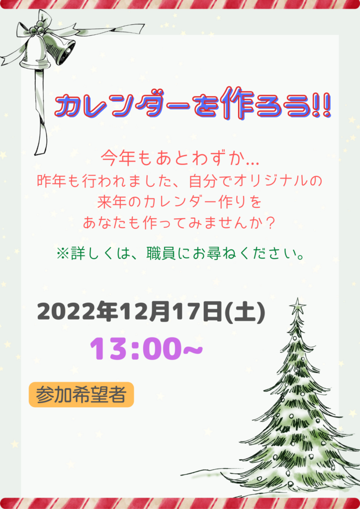 今回の土曜開所では、『2023年のカレンダー作り』を行いました♪