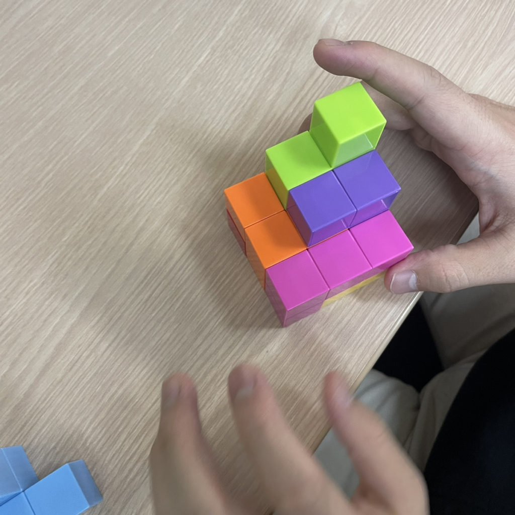 立体パズルでは、立体のピースを使って答えになる形を組み立てていきます。 そのため、形の高さ、横幅、奥行きがどれだけ広がっているかを把握する必要があり、空間認識能力を伸ばす訓練になります。