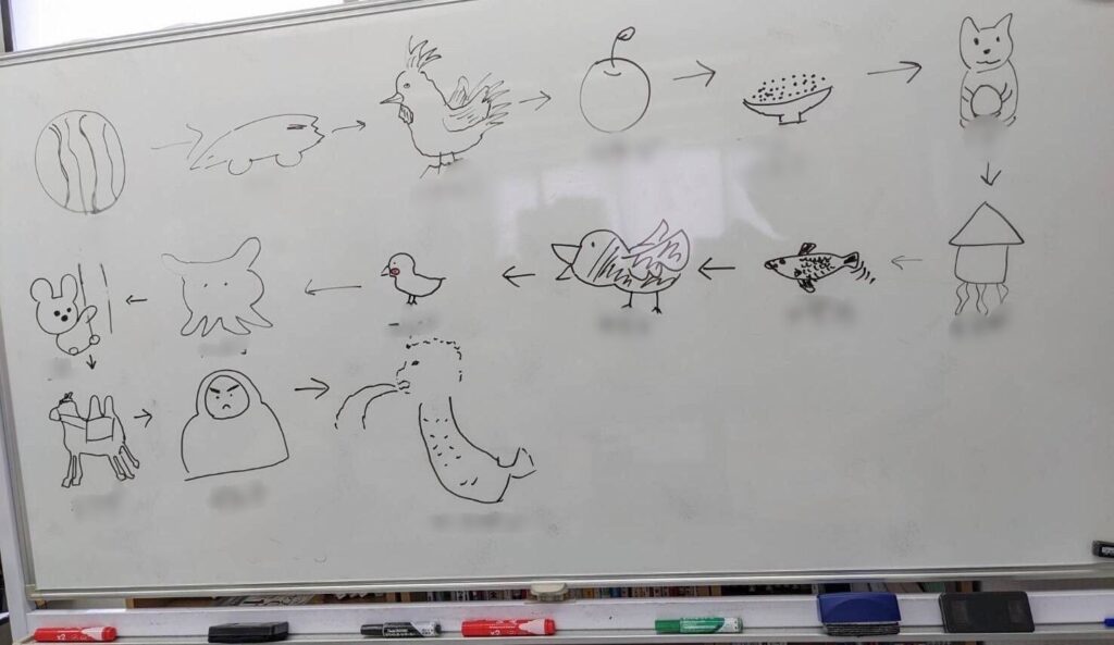 前に書いた方が何を書いたかと分析し、 自身の書ける絵で次につなげていく。 なかなか今回の参加者の皆様は柔軟に対応されていました。