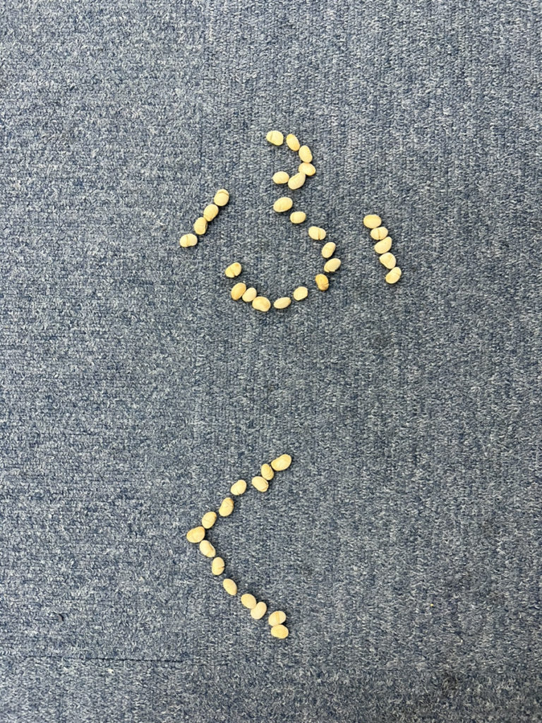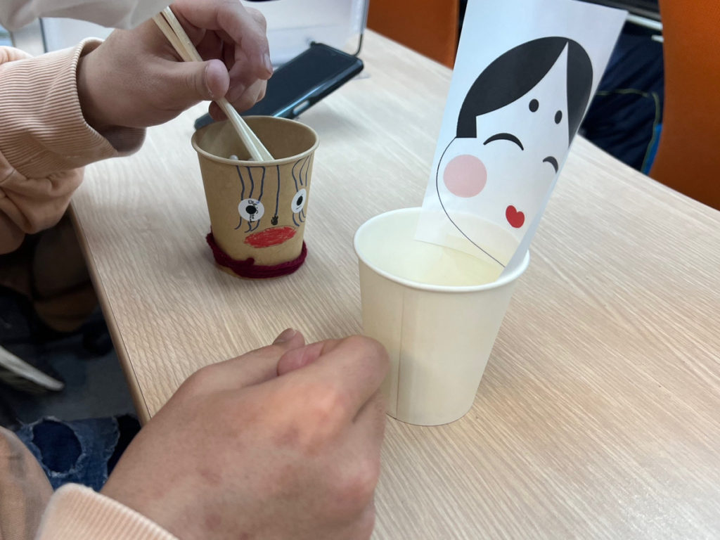 恐ろしい鬼から福へと豆をお箸で移す作業は、なかなかの集中力と忍耐力を必要とする作業です。