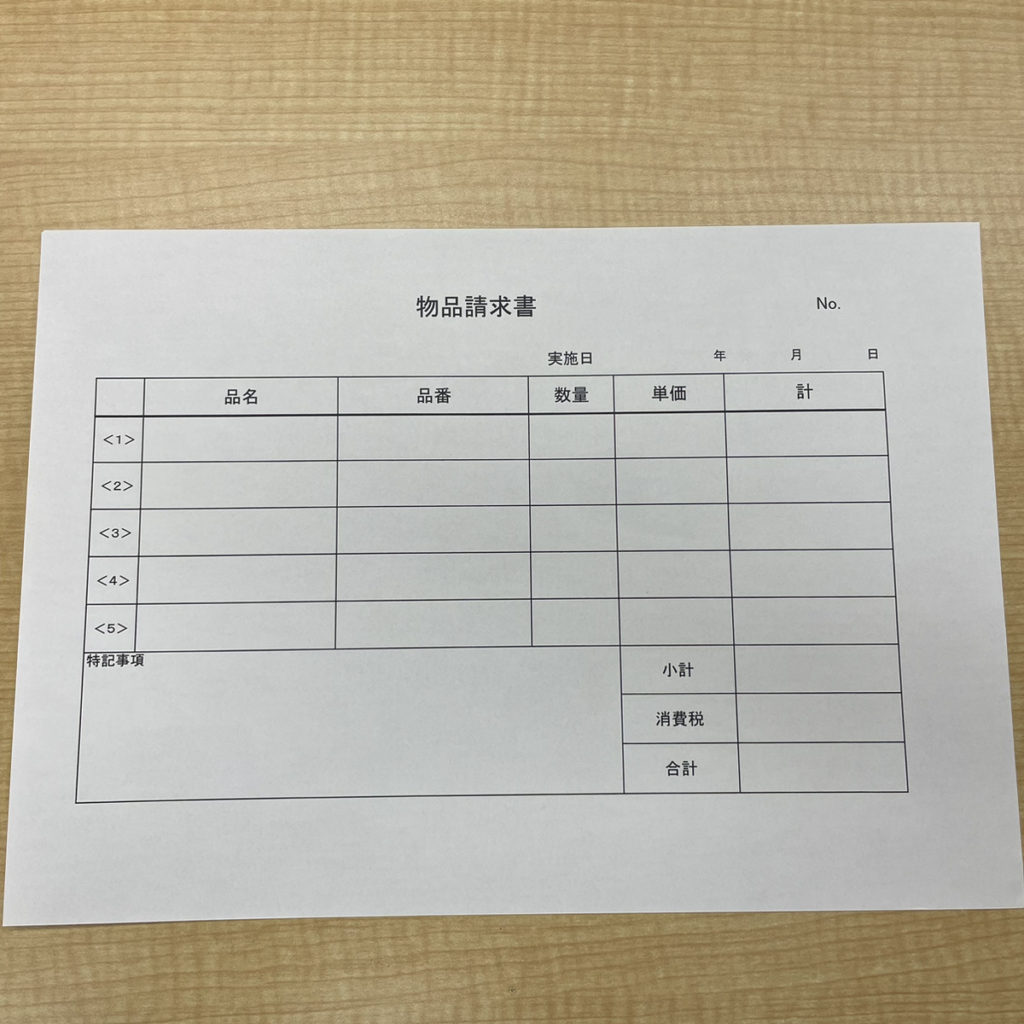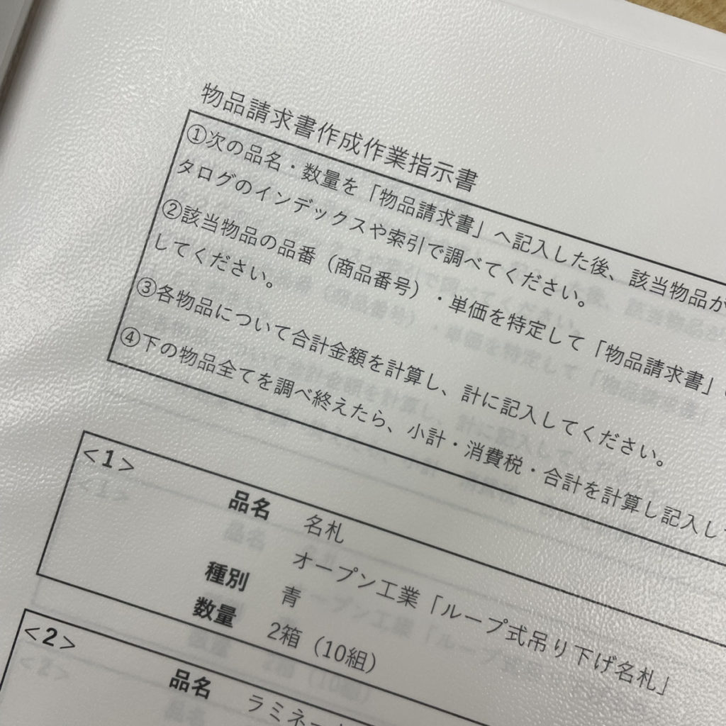 請求書作成ではこちらの指示書をもとに、カタログから商品を特定し、品名、品番、数量、単価を請求書に書きます。
