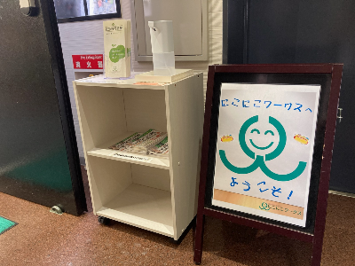 大阪市西区の就労移行支援事業所 にこにこワークスの入り口に設置してある「消毒液」