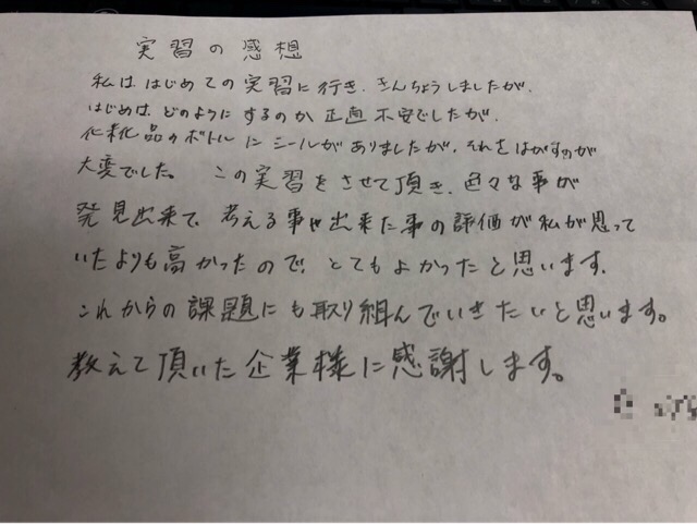 先週に初めての実習を終えられた利用者さんから「感想」を頂いております?