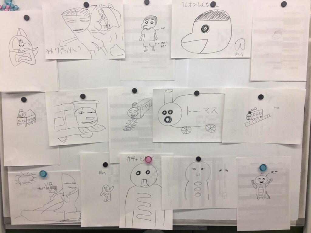 先日コミュニケーションでの一コマです。 コミュニケーションはお話をすることだけではありませんよね? お題を出して皆さま記憶を思い出し、即興で何も見ずに紙に書いていただきました。 皆さま年齢も様々なので、国民的なアニメのアンパ○マンやドラえ〇んのお題が出ました。 自身と対話をしていただき、皆様に絞り出し、書いてもらった作品です。 なかなか個性的な作品が多く、皆様で笑いの絶えない1コマとなりました。