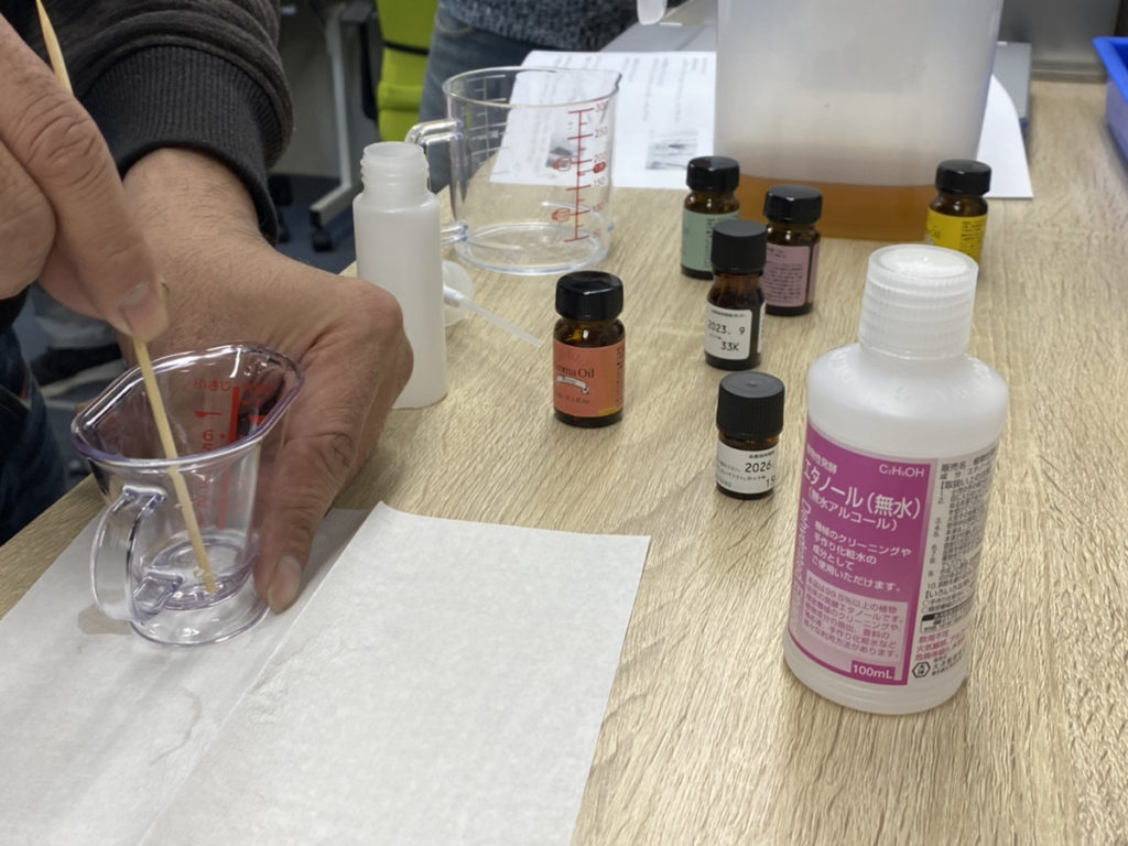 自分の好みや目的に合わせてみなさん好きな香りで オリジナルのアルコールスプレーを作ることができました。