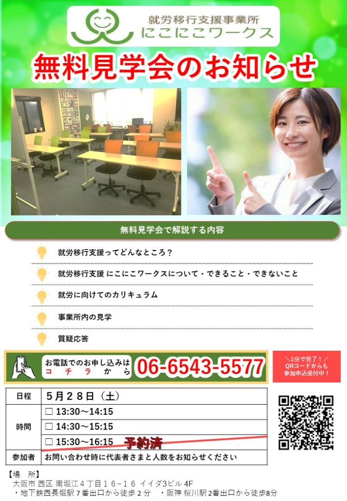 就労移行支援にこにこワークスでの無料見学会のお知らせ