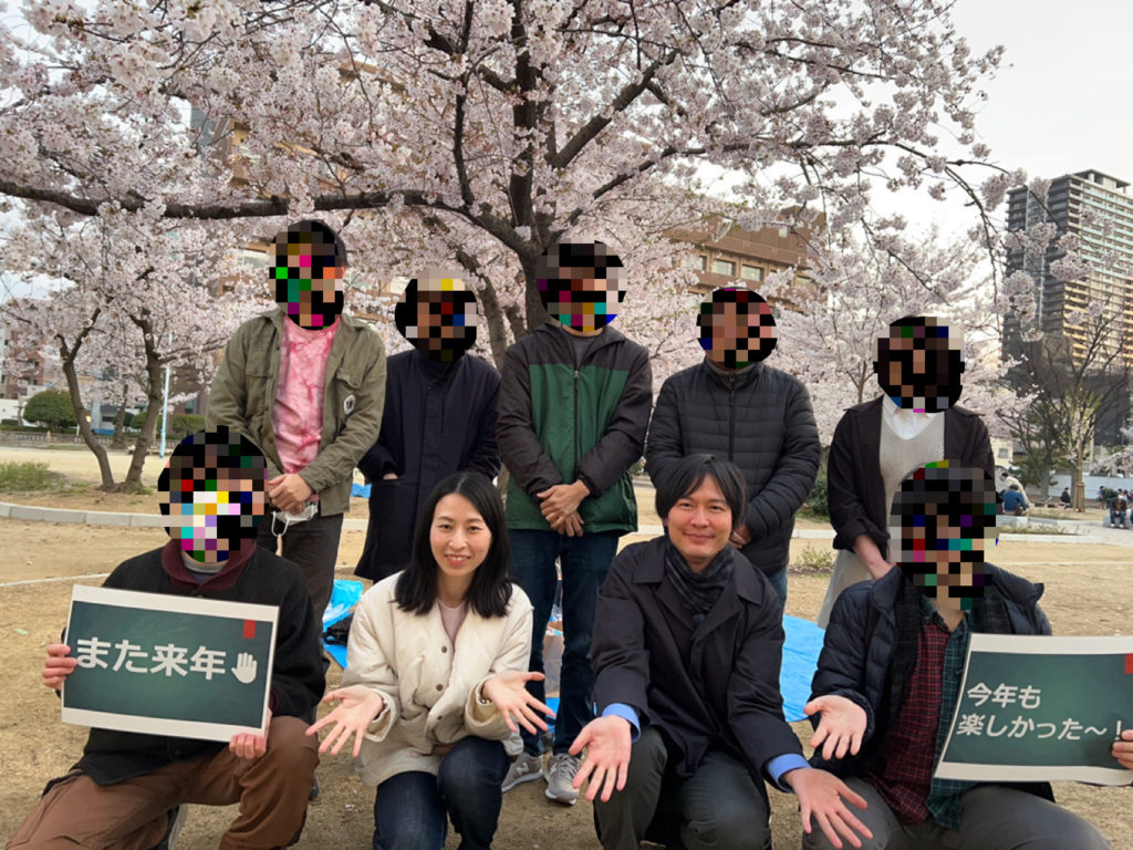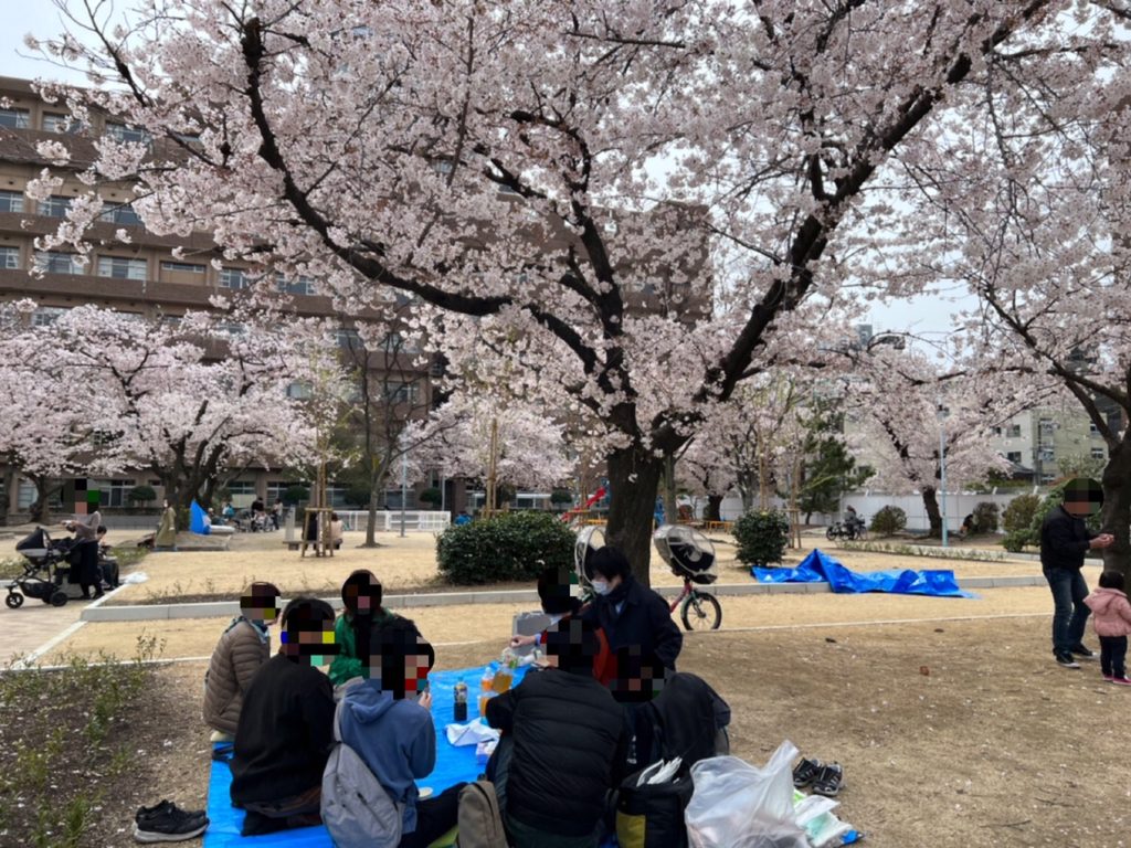4/2(土)の午前・午後の二部構成でお花見に行って参りました。 新型コロナウイルスの影響で長居はできなかったのと、 人数分散の為に、午前の部と午後の部を分けさせていただきました。