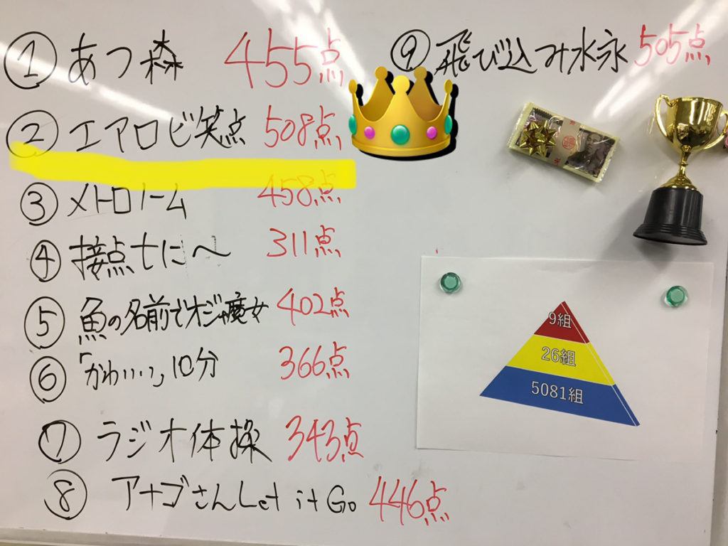 事業所内で『誰が持ち込んだ動画が印象に残ったか?』を決める“D-1グランプリ”を開催いたしました⭐ ルールはシンプルで、YouTube内の動画(10分以内)の中から動画を選んでいただき発表を行います。審査は全員で行い、見た動画に100点満点で点数をつけて、合計点数が高い方が2020年度のD-1チャンピオンとなります。 皆さんが持ち寄った動画には、 ネタ系や、アーティスト系、ゲーム実況や癒し動画…等、幅広いジャンルの動画がありました。 個性豊かな動画がたくさんあり、とても楽しいひと時を過ごせたのですが。 審査になると、かなり厳しい審査となり(笑)。 超超超辛口なコメントをされる方もいらっしゃいますし、まさかの『0点』を叩き出される方もいらっしゃいました。笑 そんなこんなでかなり現場は荒れておりましたが、 超激戦の中、チャンピオンに輝いたのは『エアロビ笑点』を持ち寄ったKさんでした!