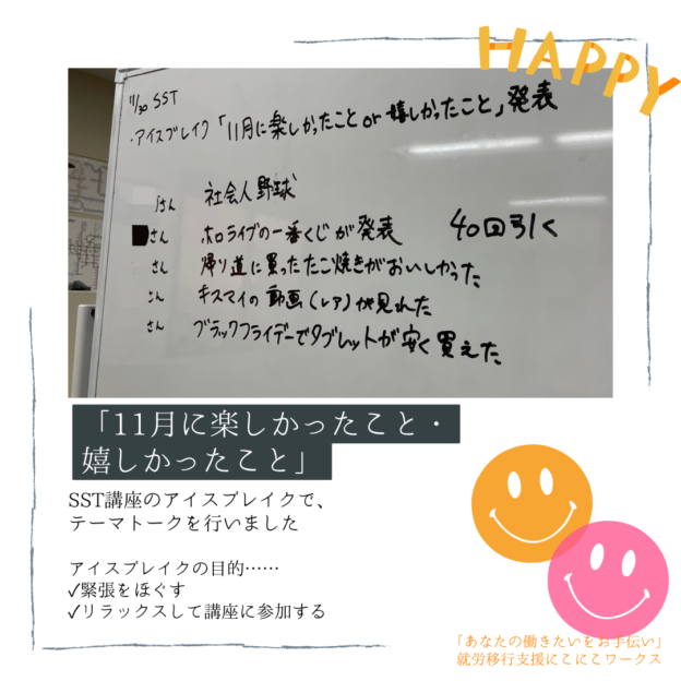 大阪市西区の就労移行支援事業所にこにこワークスでは、精神疾患や発達障害など、障がいや難病により単独で就職する事が困難で就職に支援が必要な方を対象に障害福祉サービスの提供を行っております。 ……