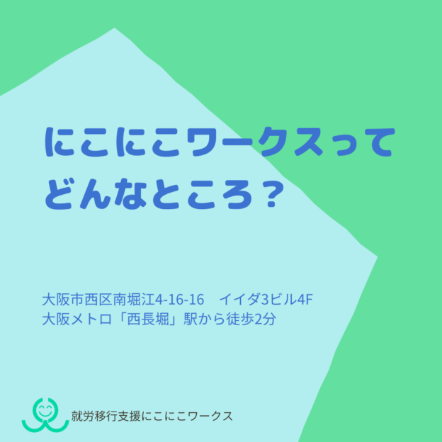 大阪市西区の就労移行支援事業所にこにこワークスでは、精神疾患や発達障害など、障がいや難病により単独で就職する事が困難で就職に支援が必要な方を対象に障害福祉サービスの提供を行……