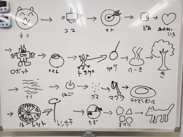 こんにちは。 大阪市 西区 就労移行支援事業所 「にこにこワークス」のスタッフの『I倉』です。 本日のコミュニケーションスキル講座ですが、『絵しりとり』をしました。 『絵しりとり』ですが、 ……