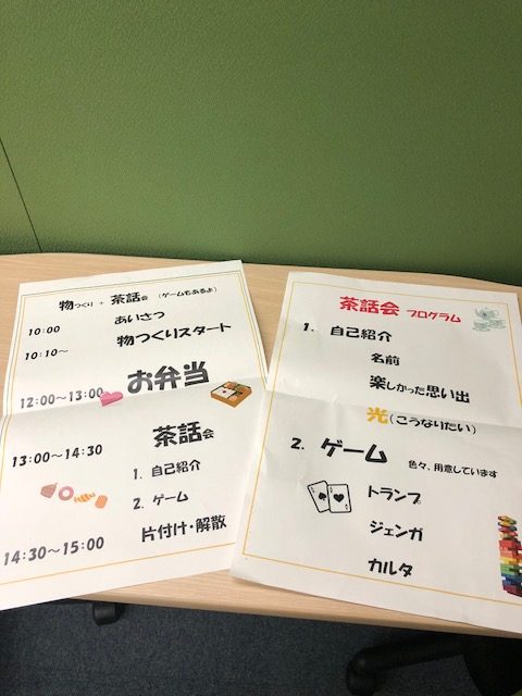 大阪市 西区就労移行支援事業所 にこにこワークス のF子です 今日は、利用者企画第5弾!! 「ものつくり&茶話会(ゲームもあるよ!)」を実施しました 実は外出する予定だったんですが・・・ ……