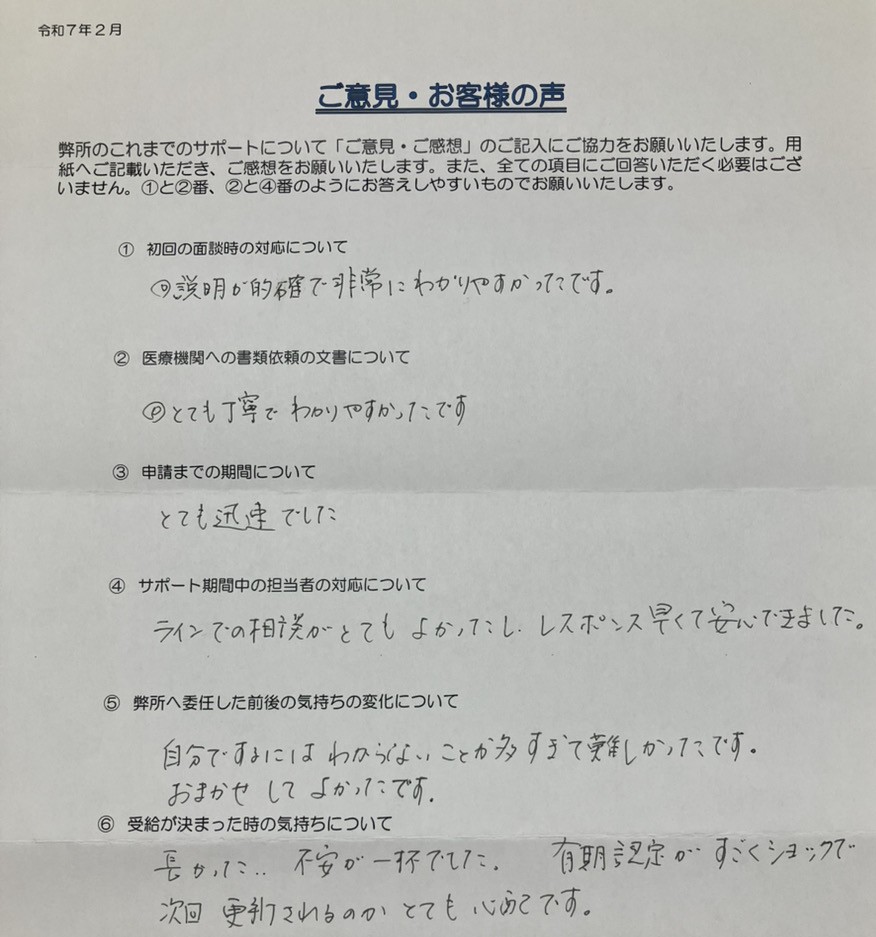 長かった…不安が一杯でした。有期認定がすごくショックで